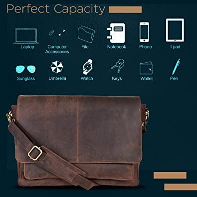Genuine Vintage Leather Messenger Bag - Handmade Document Briefcase Adjustable Shoulder Bag